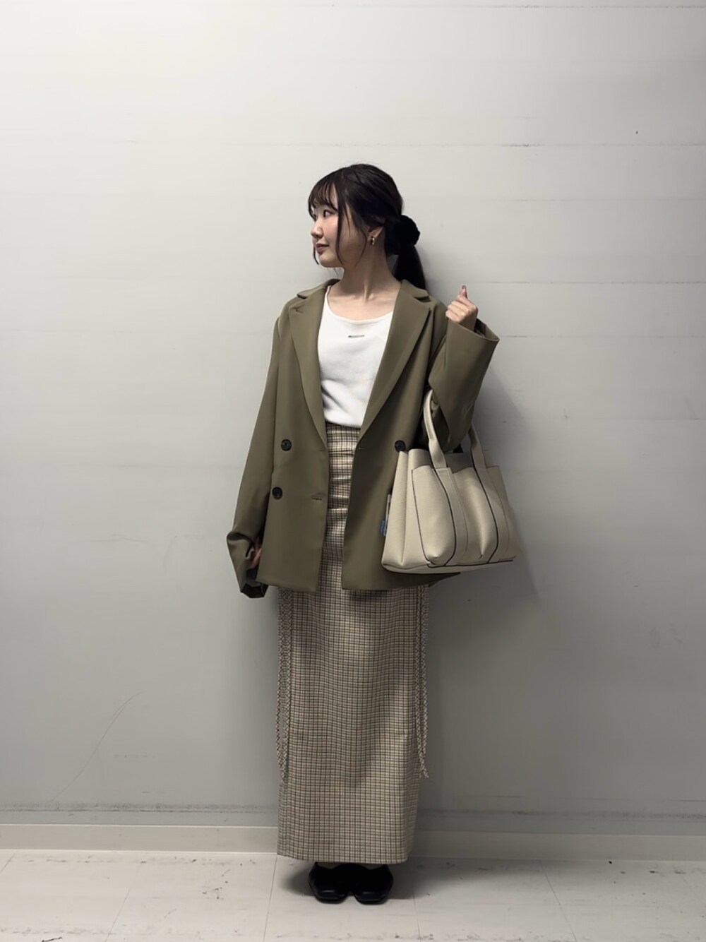 ご覧いただきありがとうございます! ジャケットを使用した春コーデを組んでみました◎ ジャケットはゆったりとしたサイズ感です。きれいめでもカジュアルでも着こなせます🌷 スカートは、身長156㎝ですがフラットシューズを履いても程良い丈感になります☺︎