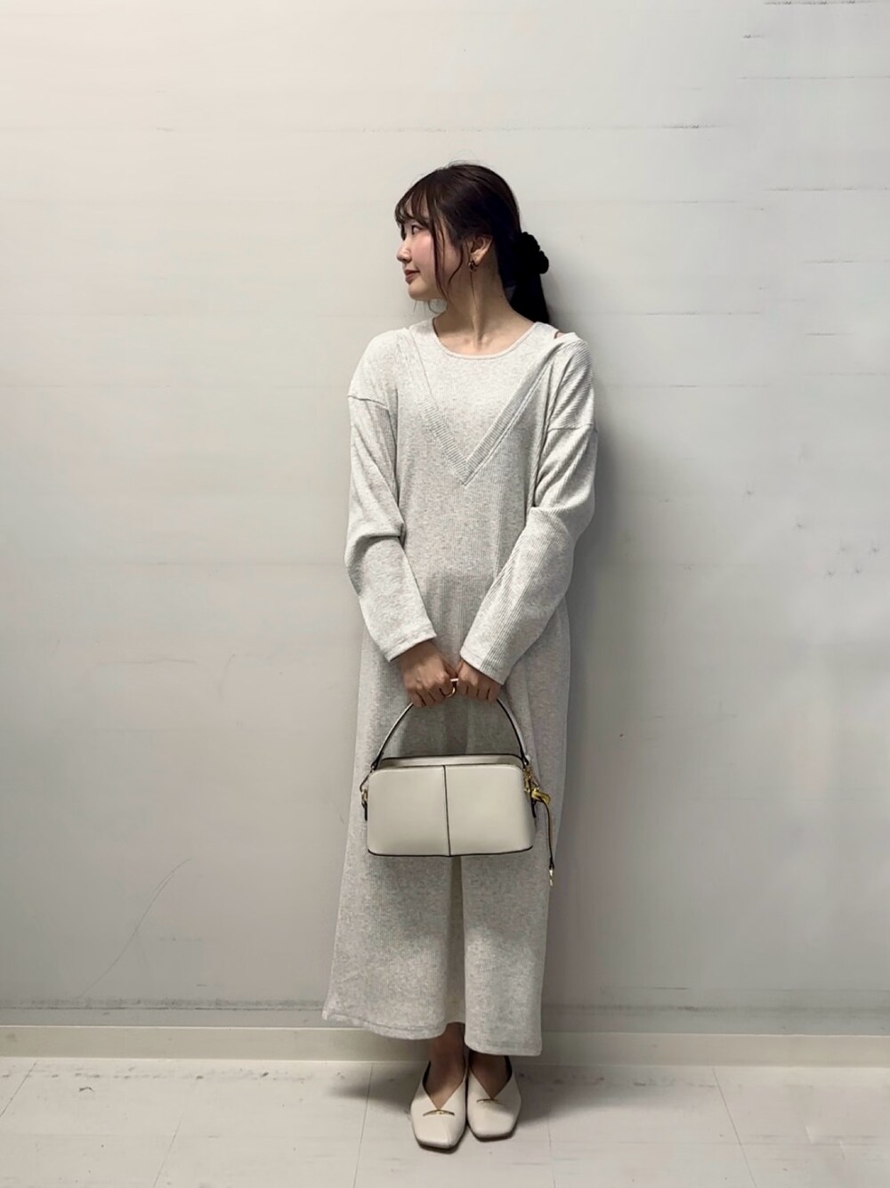里沙子(SENSE OF PLACE 心斎橋)のワンピース「レイヤードネックリブワンピース」を使ったコーディネート
