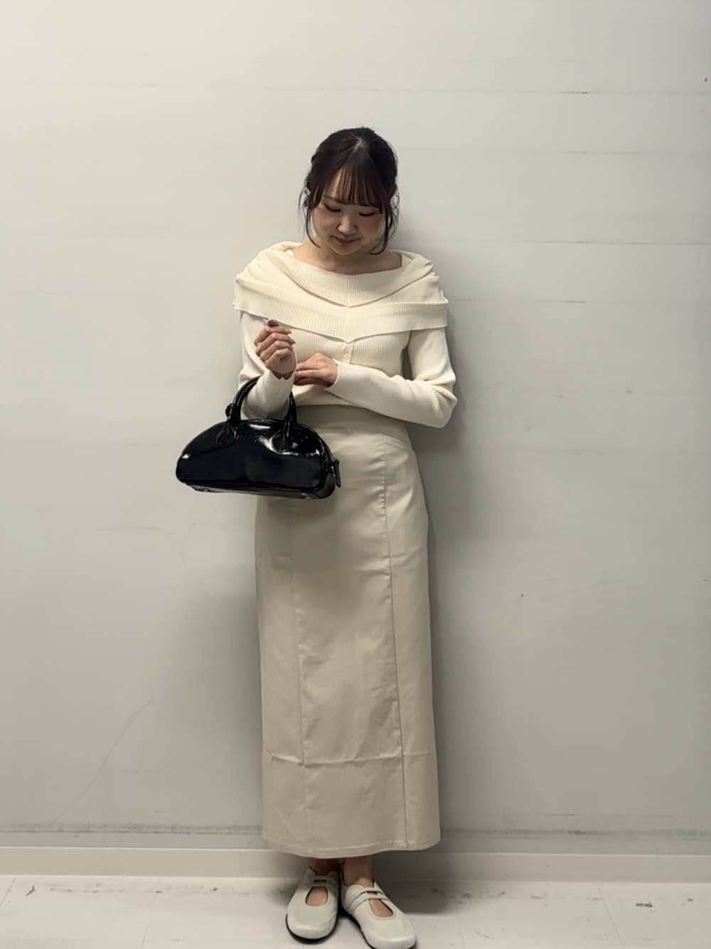 里沙子(SENSE OF PLACE 心斎橋)のニット/セーター「『洗濯可/防花粉』SKINProofオフショルセーター」を使ったコーディネート