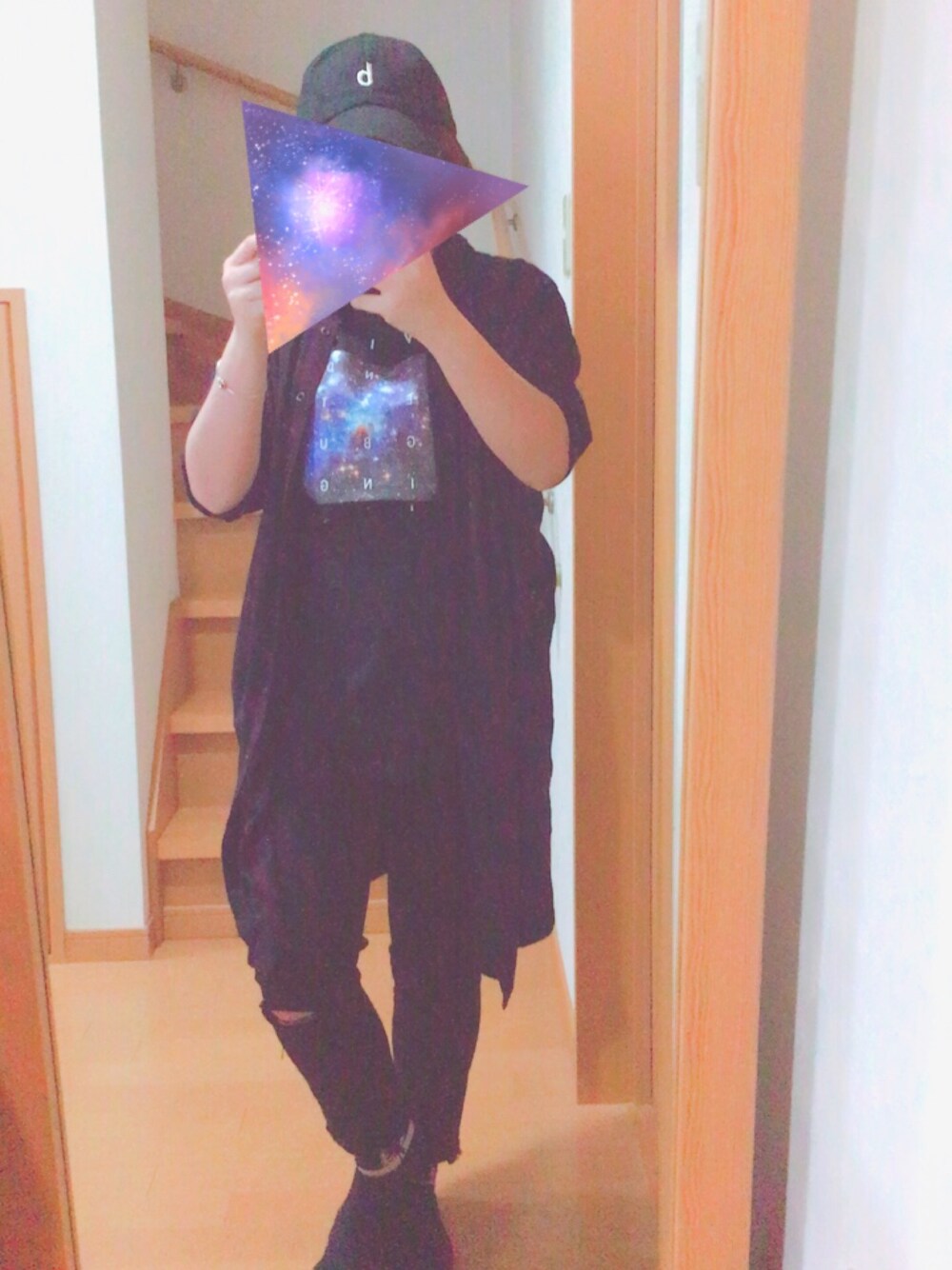 黒Tに黒ジーンズでかっこいい風にしてみました✨