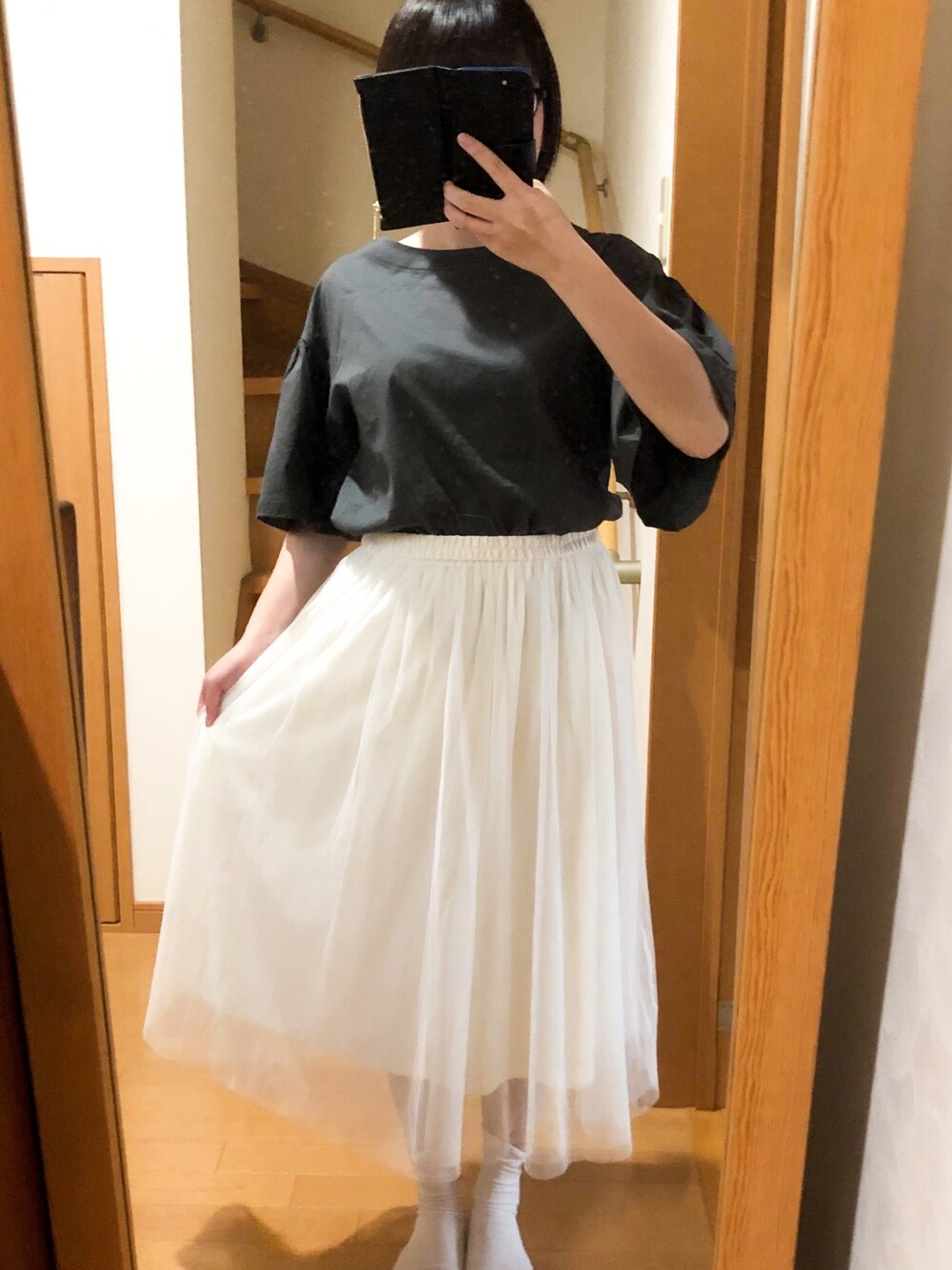 ぶらっと散歩するだけなので、カジュアルに。 でもちょっと可愛く見せたいので、チュールスカートにしました😊 チュールスカートが最近のお気に入りです⭐