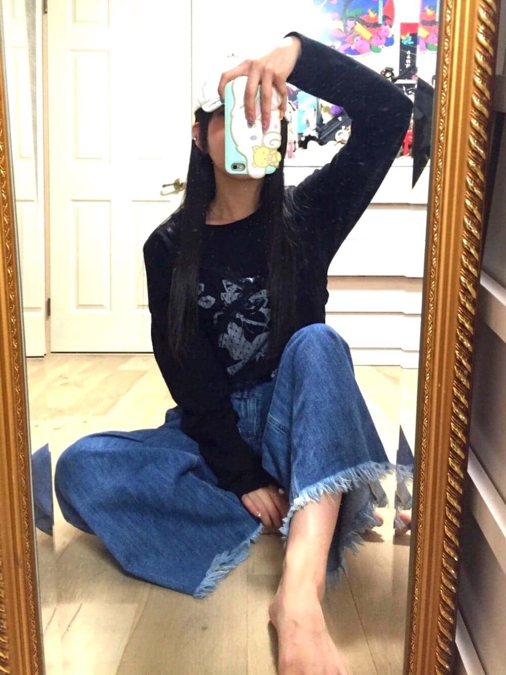 ラフ。動きやすさを重視しつつ、ロンTの上にレースのベビードール的なのが付いててガーリーも忘れない💕 ジーンズらくちん〜🐒✨✨✨