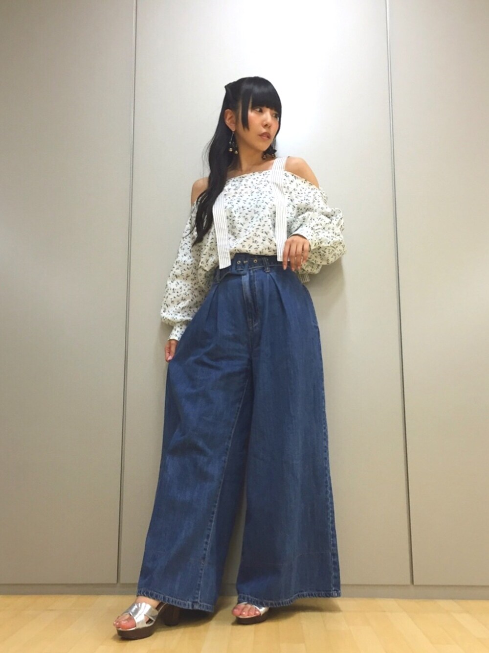相沢梨紗のデニムパンツ「共ベルト付デニムワイドパンツ◆」を使ったコーディネート