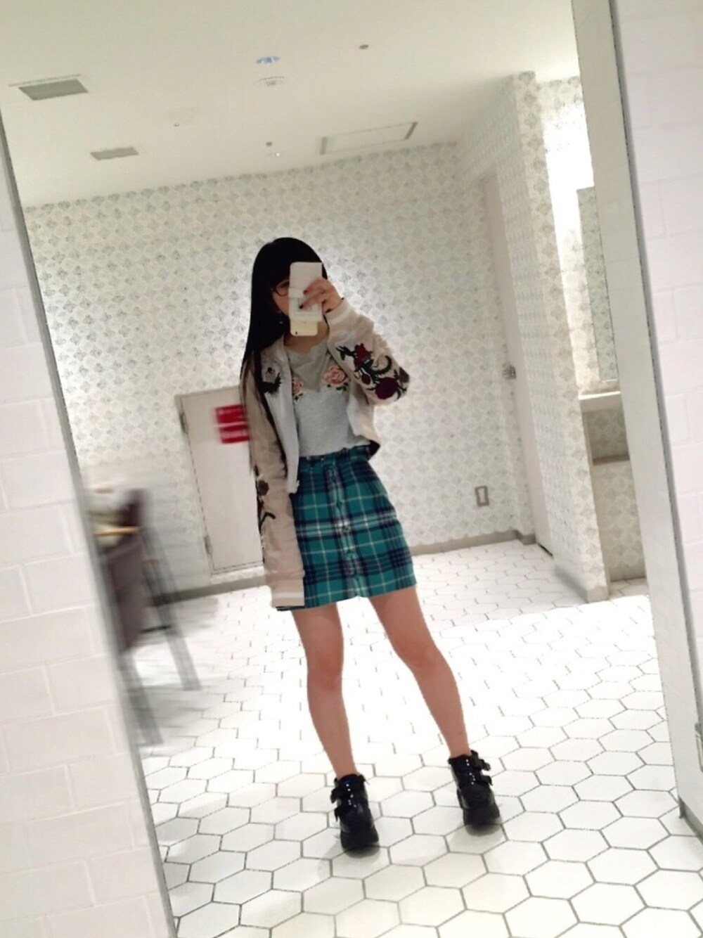 相沢梨紗のスカート「フロントボタンベルト付きチェック台形ミニスカート◆」を使ったコーディネート