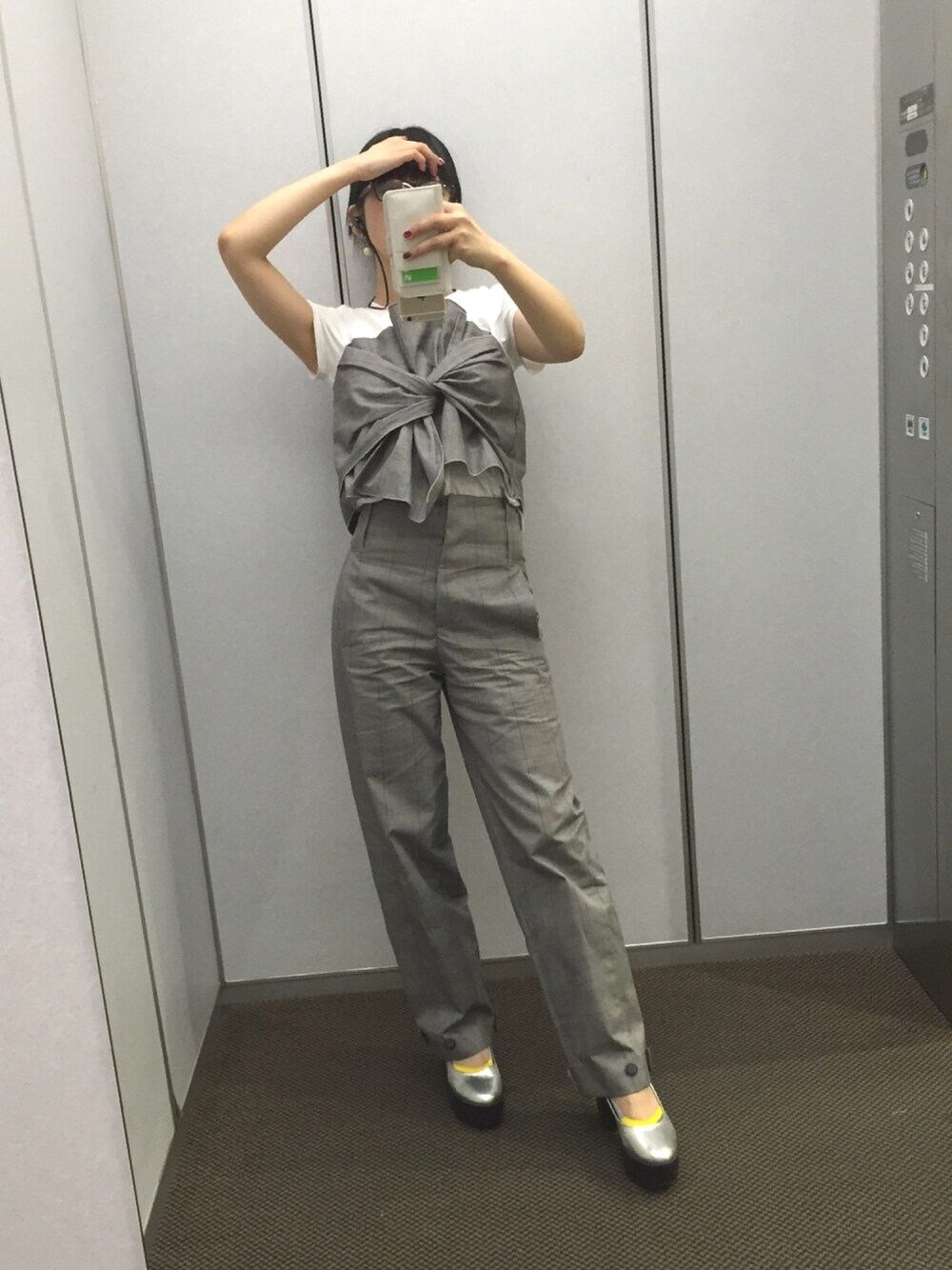 相沢梨紗のTシャツ/カットソー「ビスチェ風デザインTシャツ」を使ったコーディネート