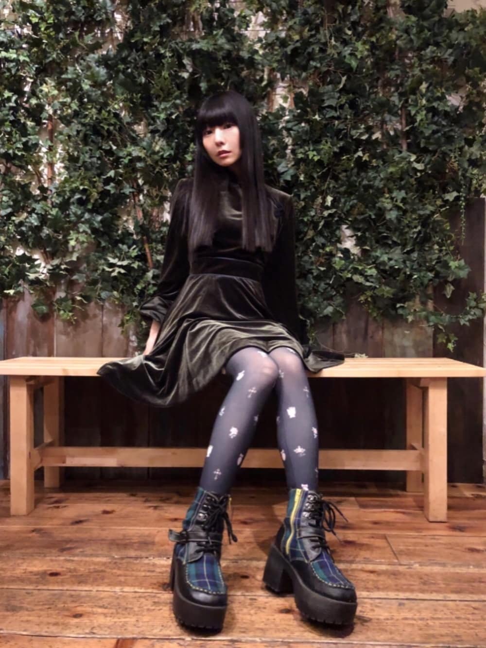 相沢梨紗のワンピース「VELOURS SISTER DRESS」を使ったコーディネート