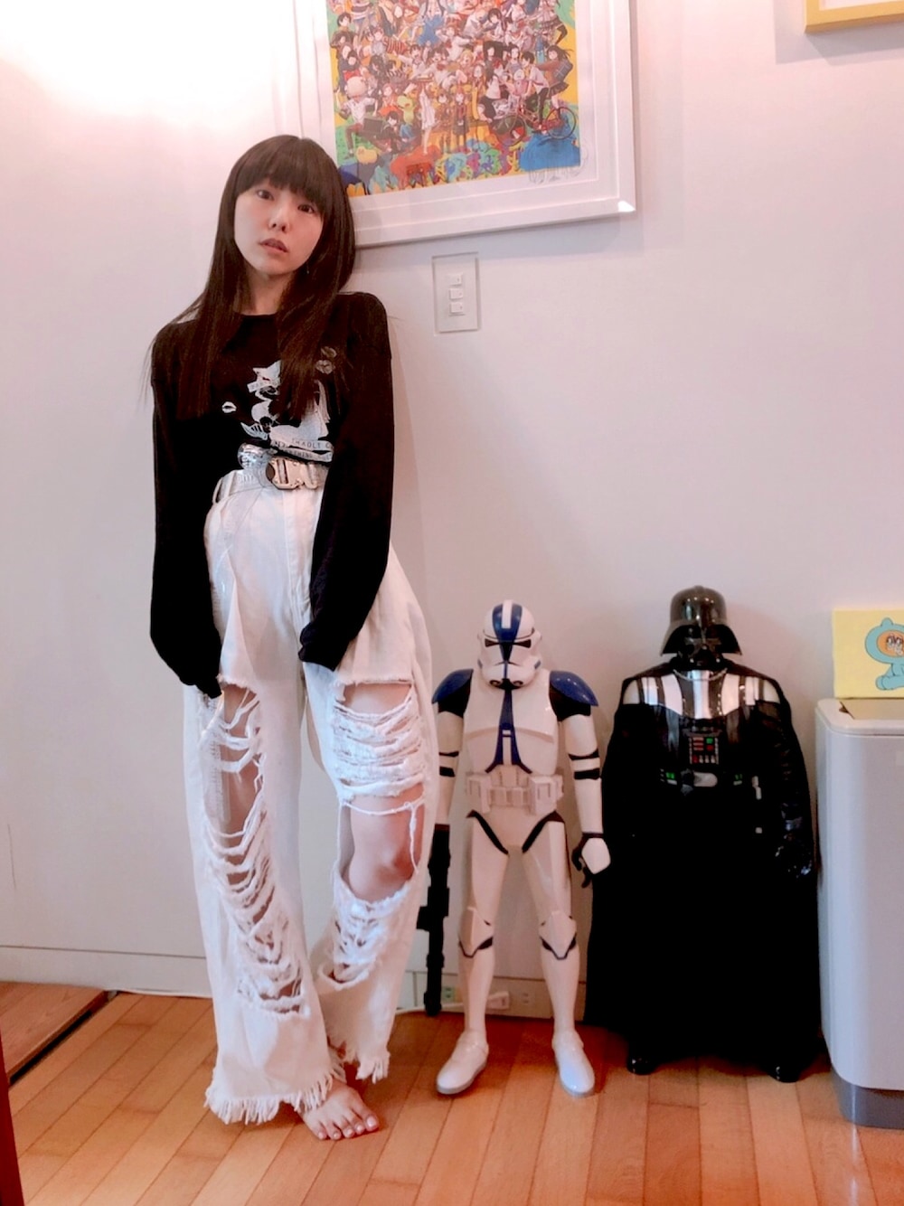 相沢梨紗のデニムパンツ「WEGO/タックヘビークラッシュワイドパンツ」を使ったコーディネート