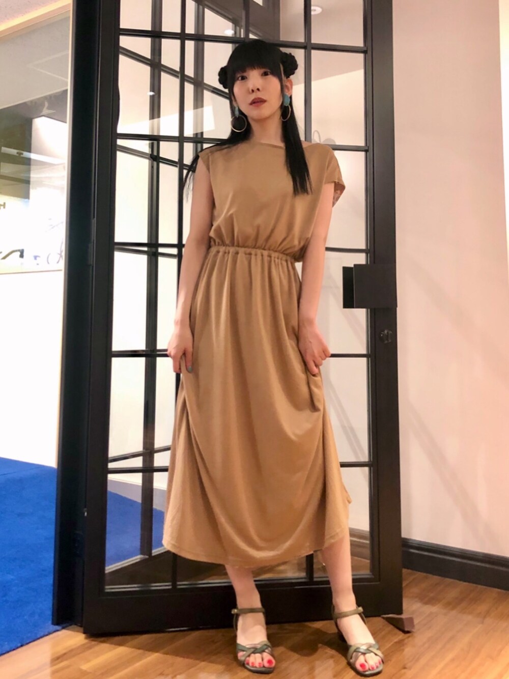相沢梨紗のワンピース「リバーシブルプリントマキシワンピース」を使ったコーディネート