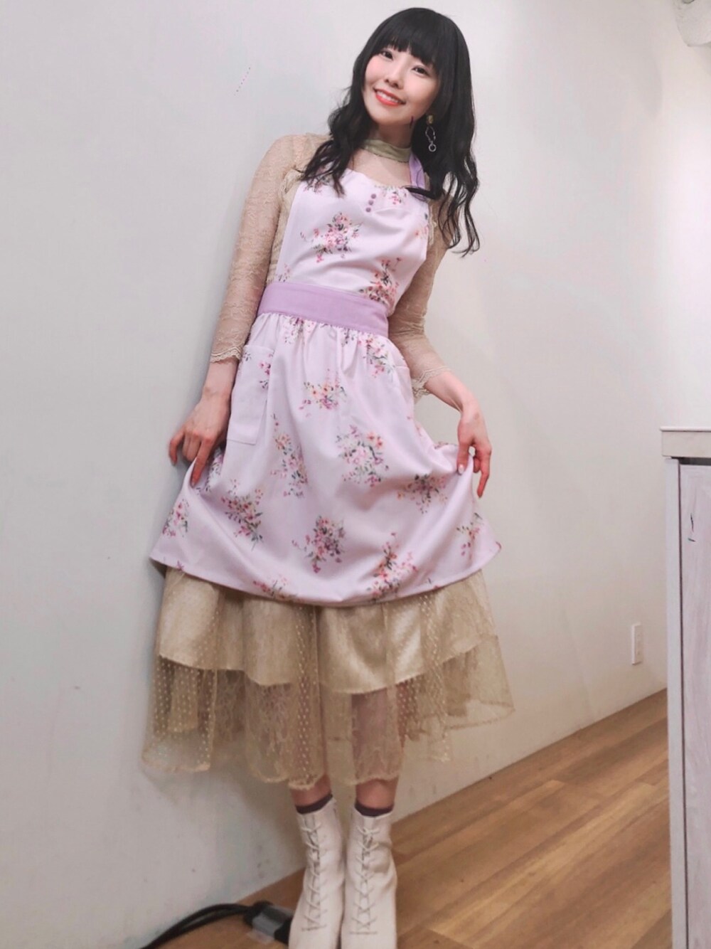 りさスイーツ配信のエプロンはこんな感じでした🤍💜春色ラベンダー✨