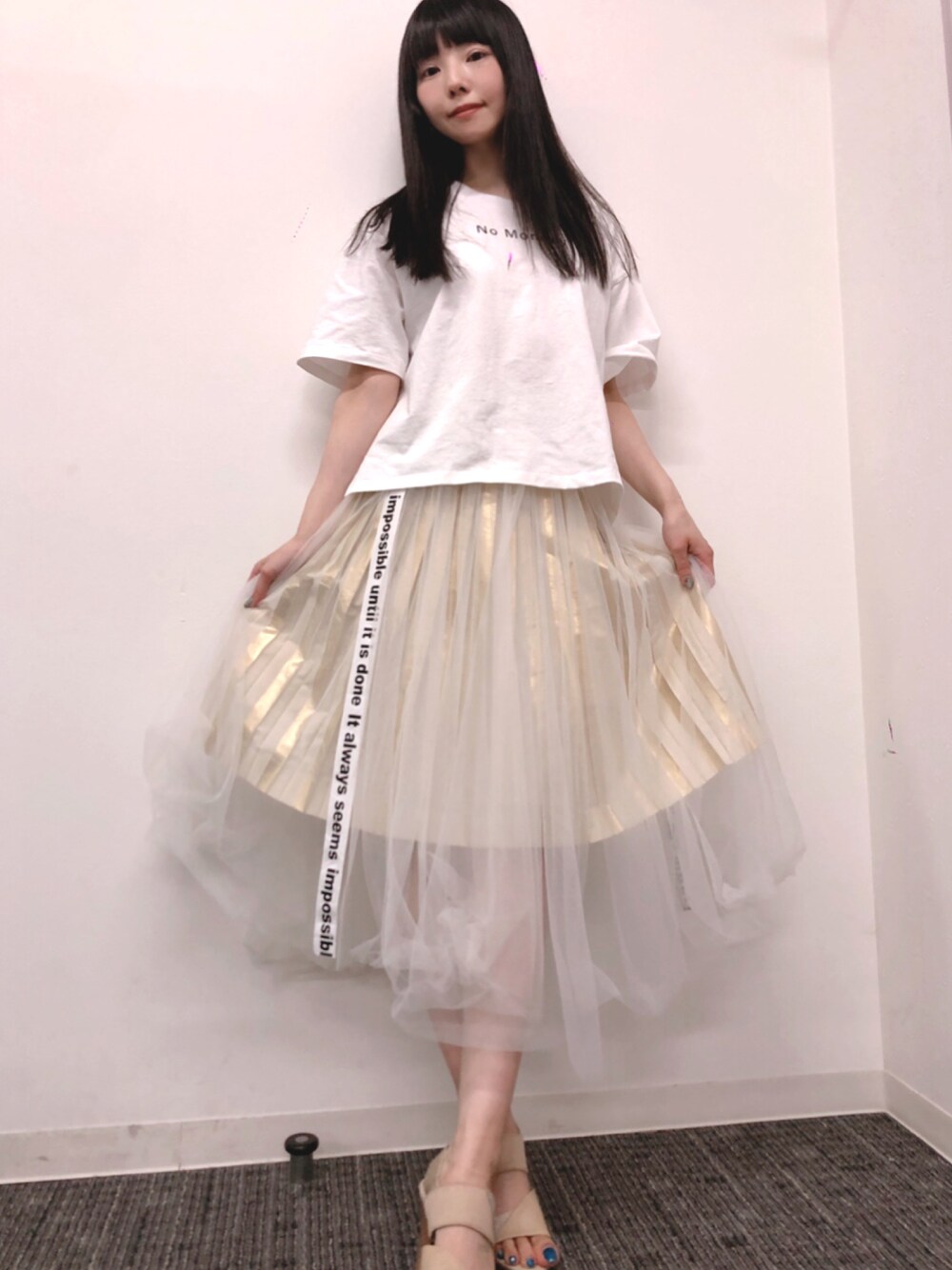 ホワイト×ゴールドで 柔らかくて動きのでるチュールスカート🤍