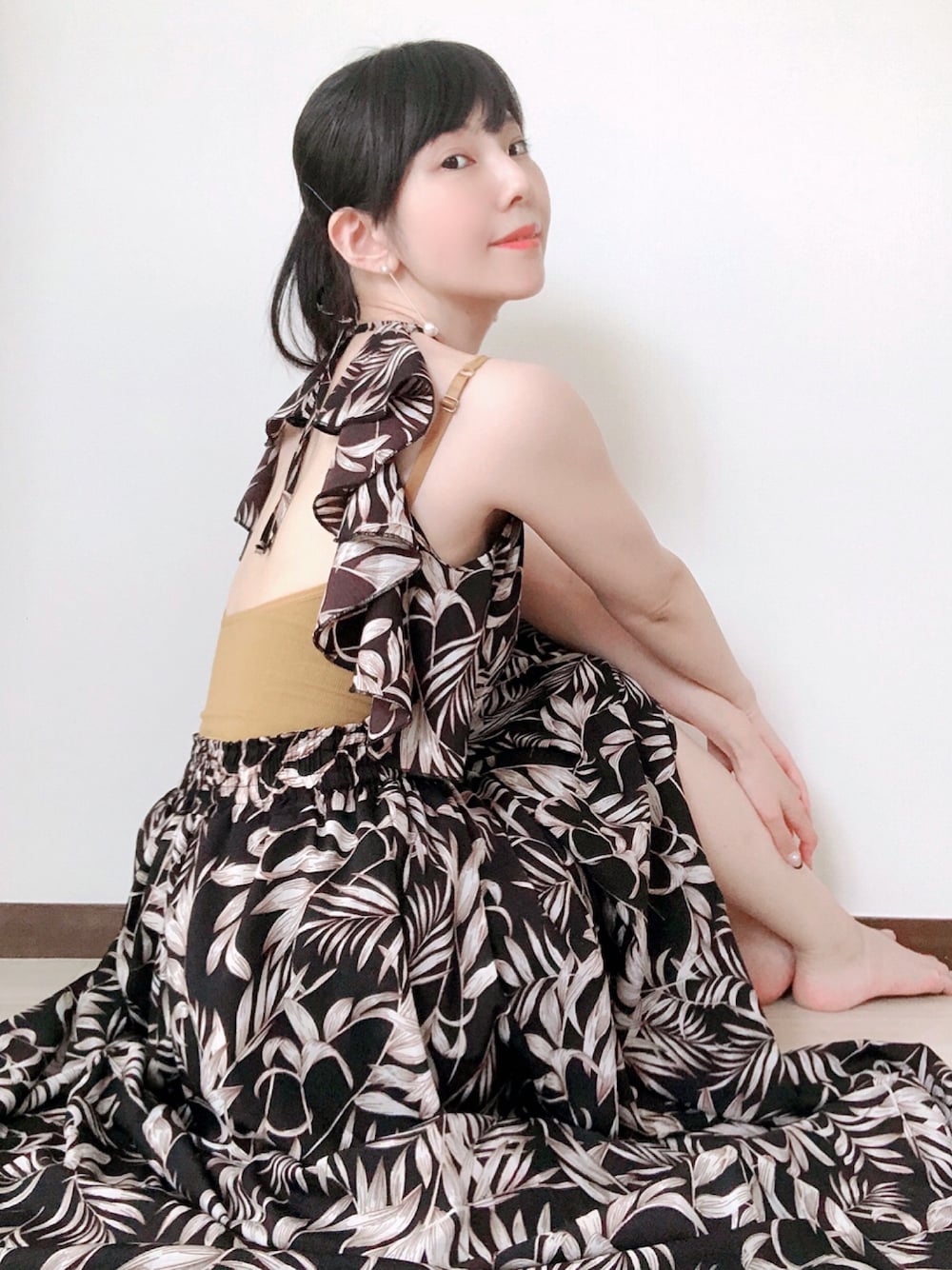 相沢梨紗のワンピース「レディース ボタニカル柄バックシャンリゾートマキシワンピ」を使ったコーディネート