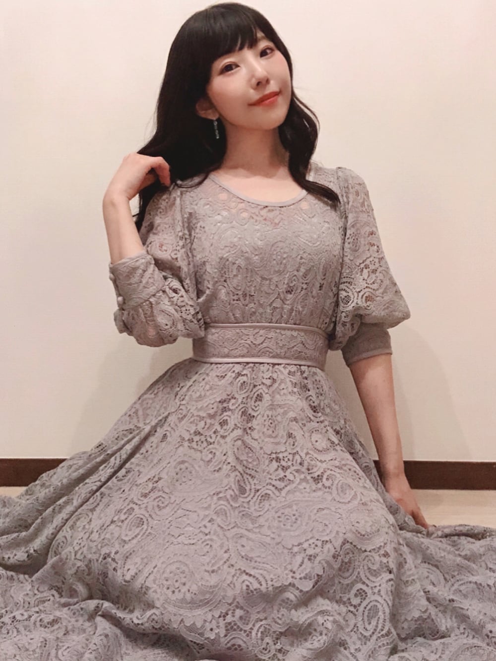 相沢梨紗のワンピース「ペイズリーレースパイピングワンピース」を使ったコーディネート