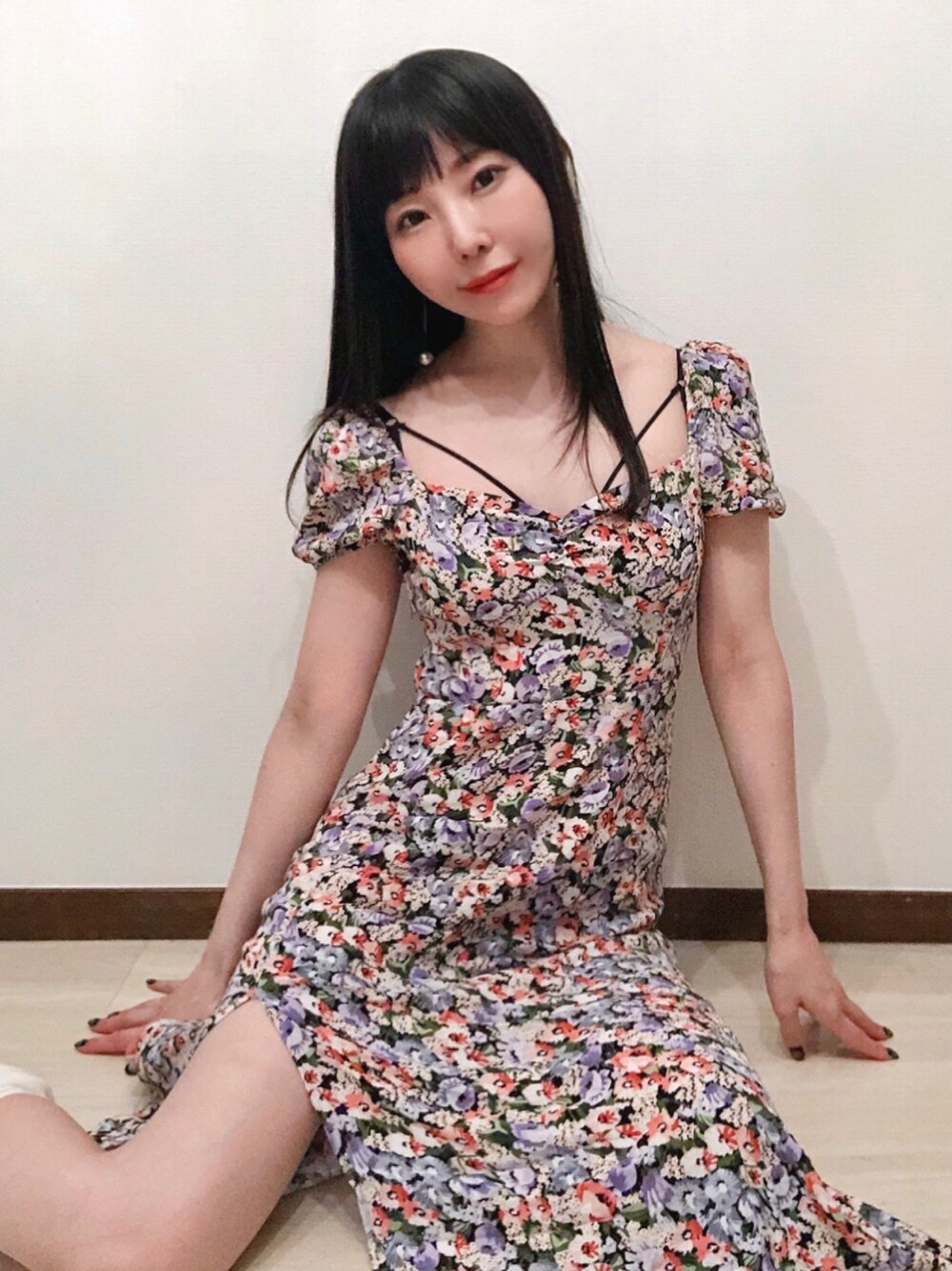 相沢梨紗のワンピース「【Fano Studios】Floral slit puff sleeve dress FX21L204」を使ったコーディネート