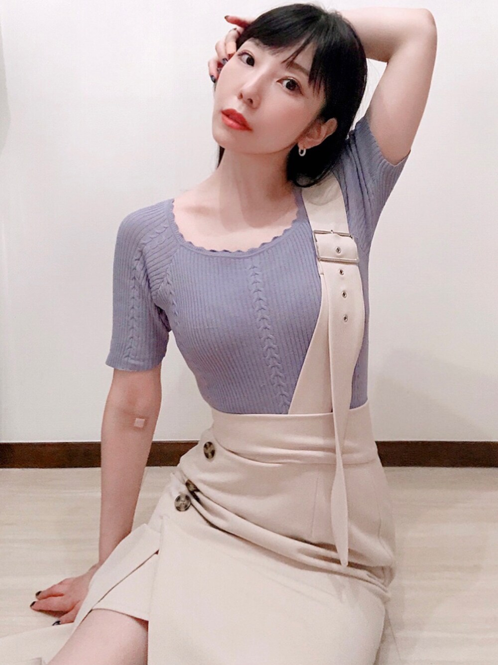 相沢梨紗のTシャツ/カットソー「スクエアネックリブケーブルデザインサマーニットトップス」を使ったコーディネート