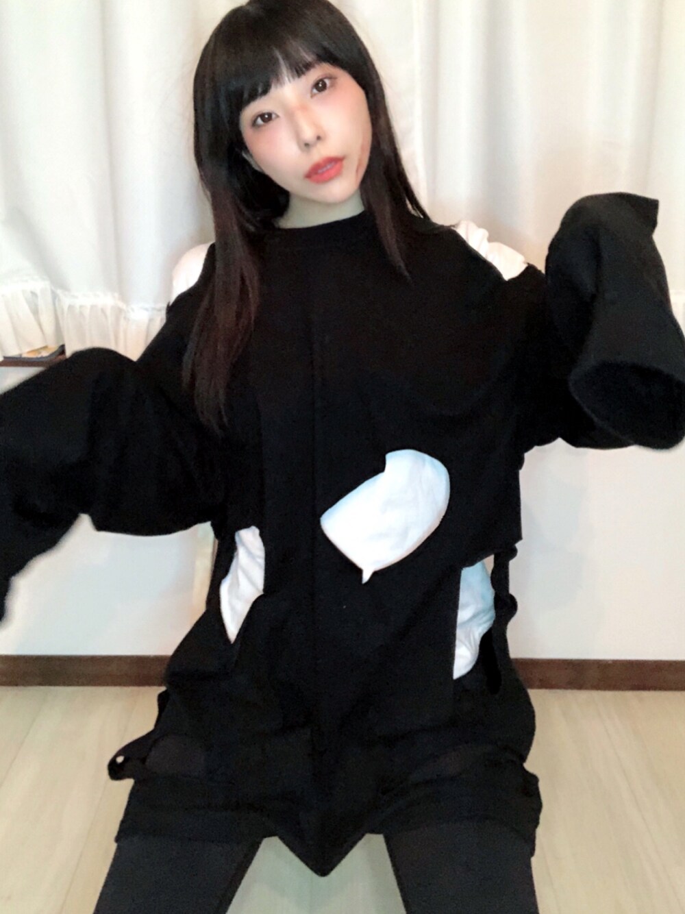 ハロウィンメイクであなぼこ仕様スウェット〜🧟♀️🖤🖤