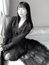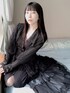 にっ曇りの窓辺にて☁️ ニットのタイトワンピースにレースとチュールのワンピースを羽織ってる🖤