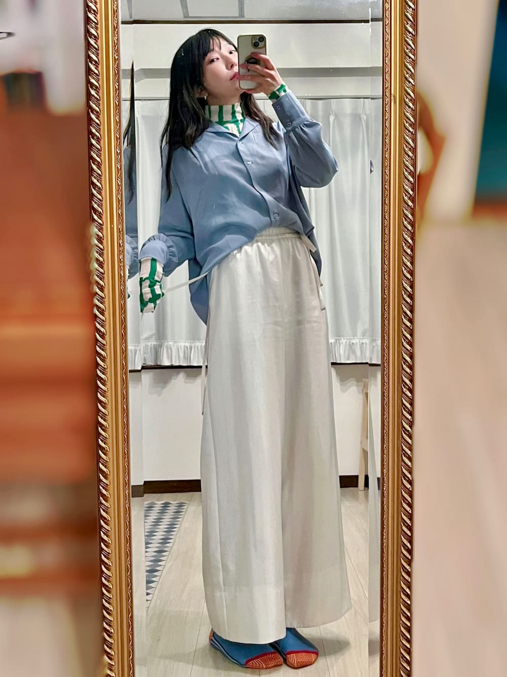 相沢梨紗のシャツ/ブラウス「ボリュウーム袖開襟シャツ」を使ったコーディネート