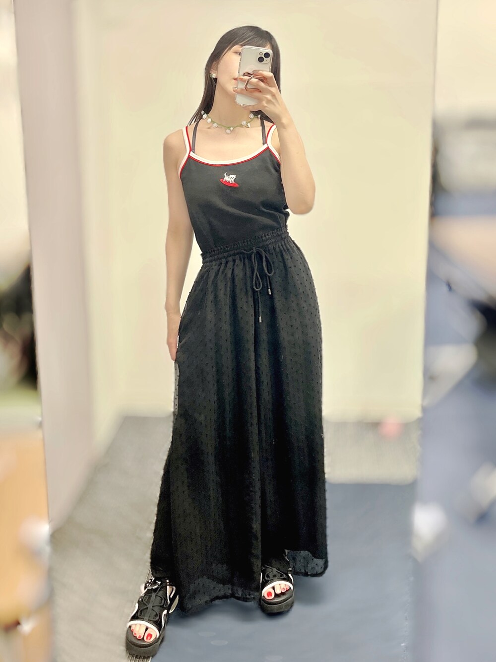 相沢梨紗のその他パンツ「ドットシフォンワイドパンツ」を使ったコーディネート