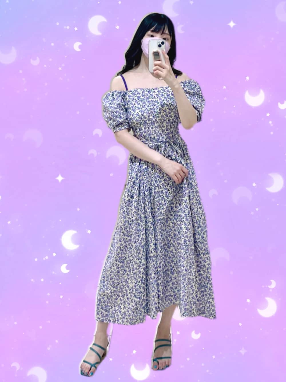 パープルコーデ💜 こんなに肩もお腹も出てるのに、 あせだらだら〜🥺