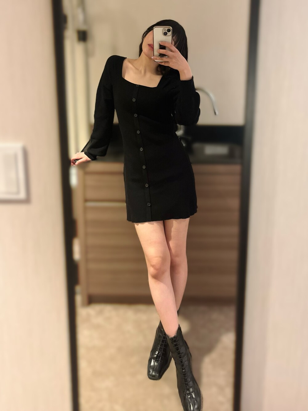 相沢梨紗のワンピース「LIMITED ITEM FRONT BUTTON MINI OP フロント ボタン ミニ ワンピース」を使ったコーディネート