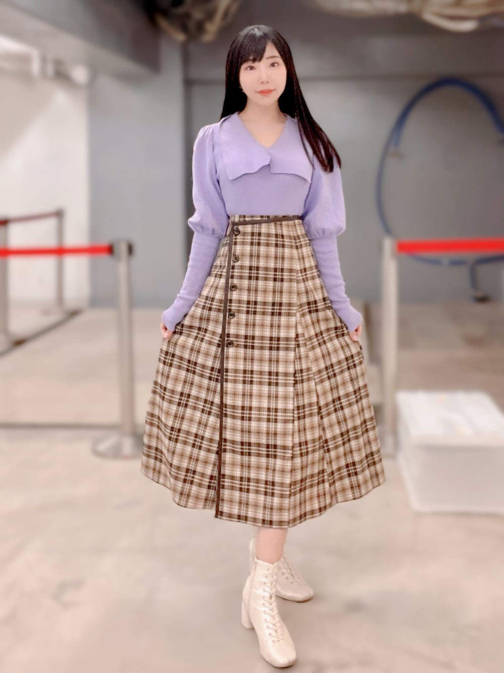 相沢梨紗のニット/セーター「ビッグカラーパフスリーブニットトップス」を使ったコーディネート