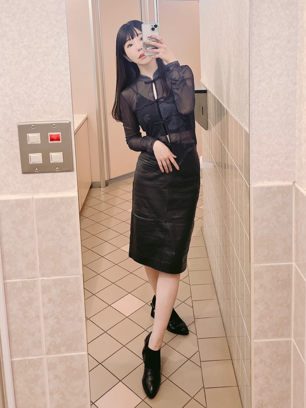 暑がりさんのお出かけコーデ💓 トップス涼しく、お腹はレザースカートで一応冷えないように💓笑 夜は軽めの羽織があっても良いかもだけど🙌