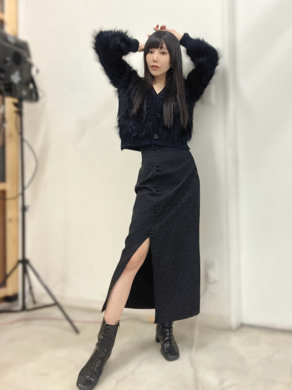 ブラックワントーンで🐦⬛ フアフアカーディガンお気に入り🤍