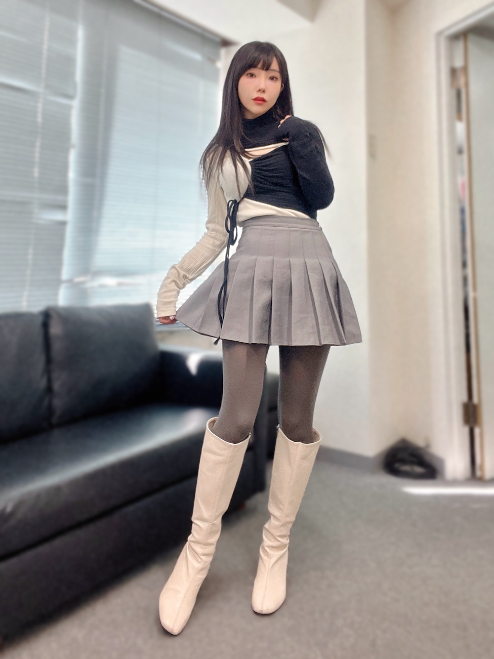 久しぶりのカラータイツ🙌 グレーのタイツ結構使いやすくて好き❤️