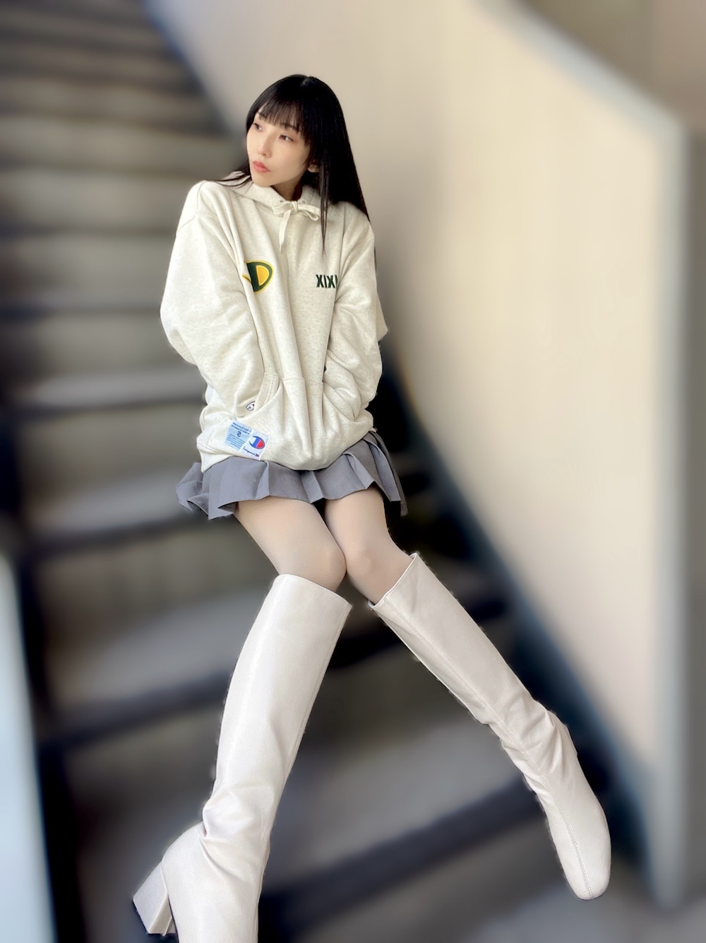 パーカー✖️ミニスカスタイリングしたくなりGETしたフード付パーカーが厚さも丈もほどよくてお気に入り🤩