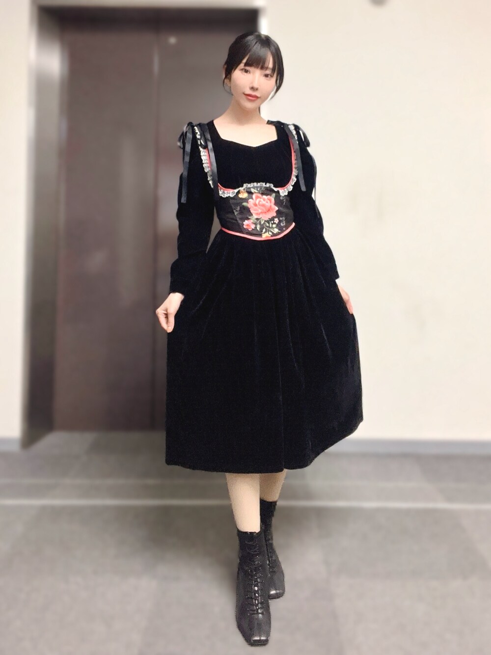 相沢梨紗のワンピース「【LEJA】スクエアネックベロアロングドレス」を使ったコーディネート
