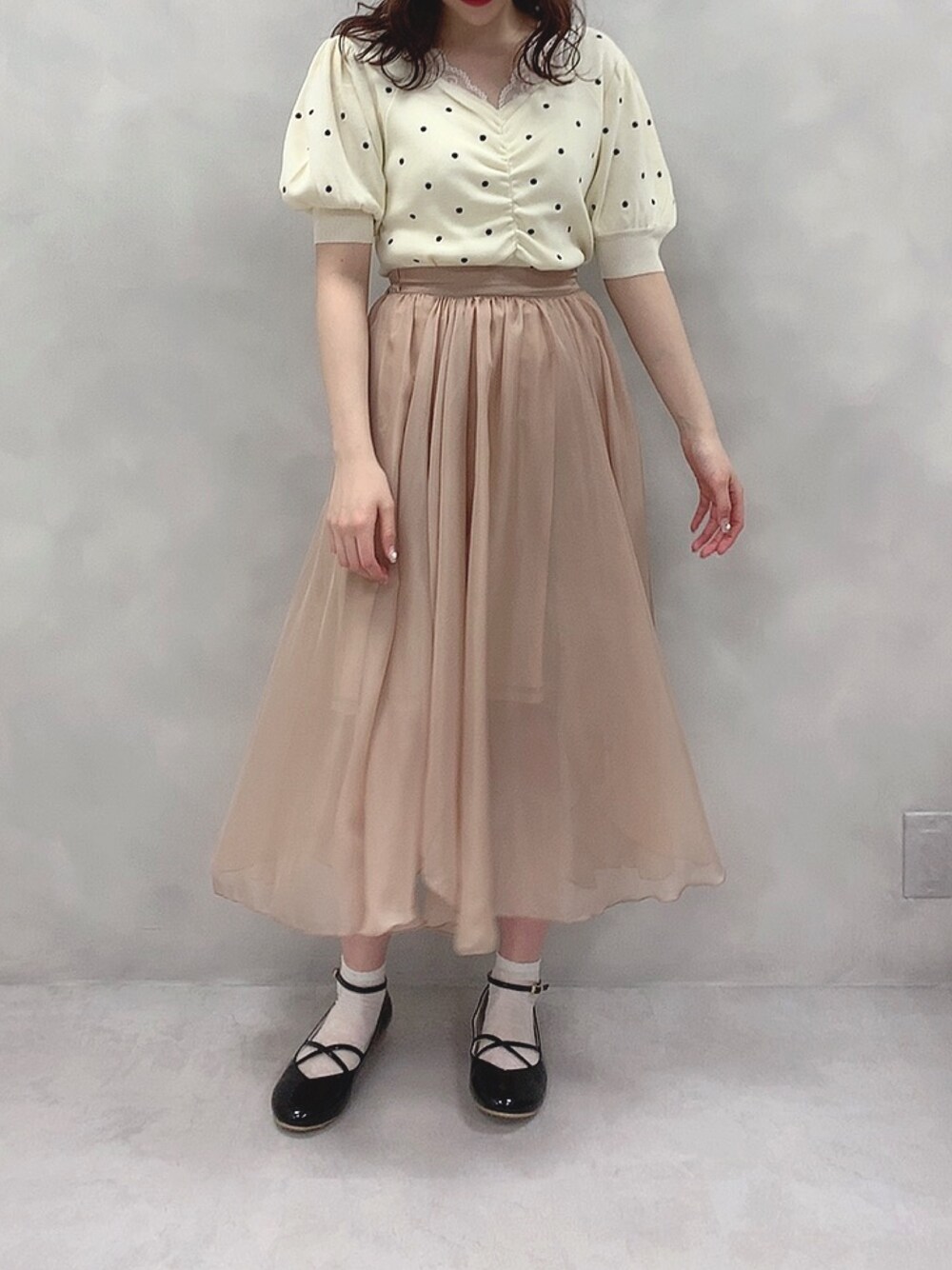 risa☻(OLIVE des OLIVE ラフォーレ原宿)のニット/セーター「ドット胸ギャザーニット」を使ったコーディネート