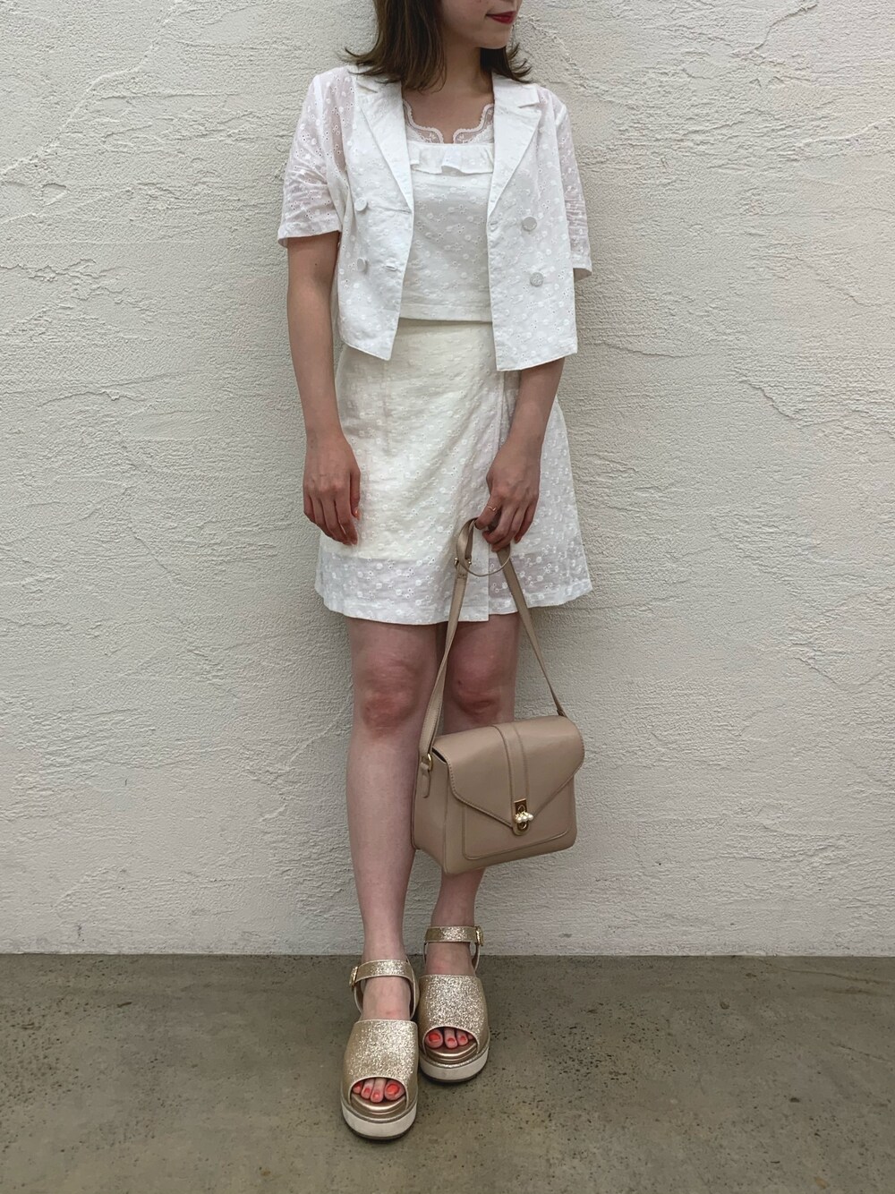 セットアップコーデ♡ コットンレースが可愛い👌🏻 ボトムはスカートに見えるけど、 実はパンツなので安心👌🏻