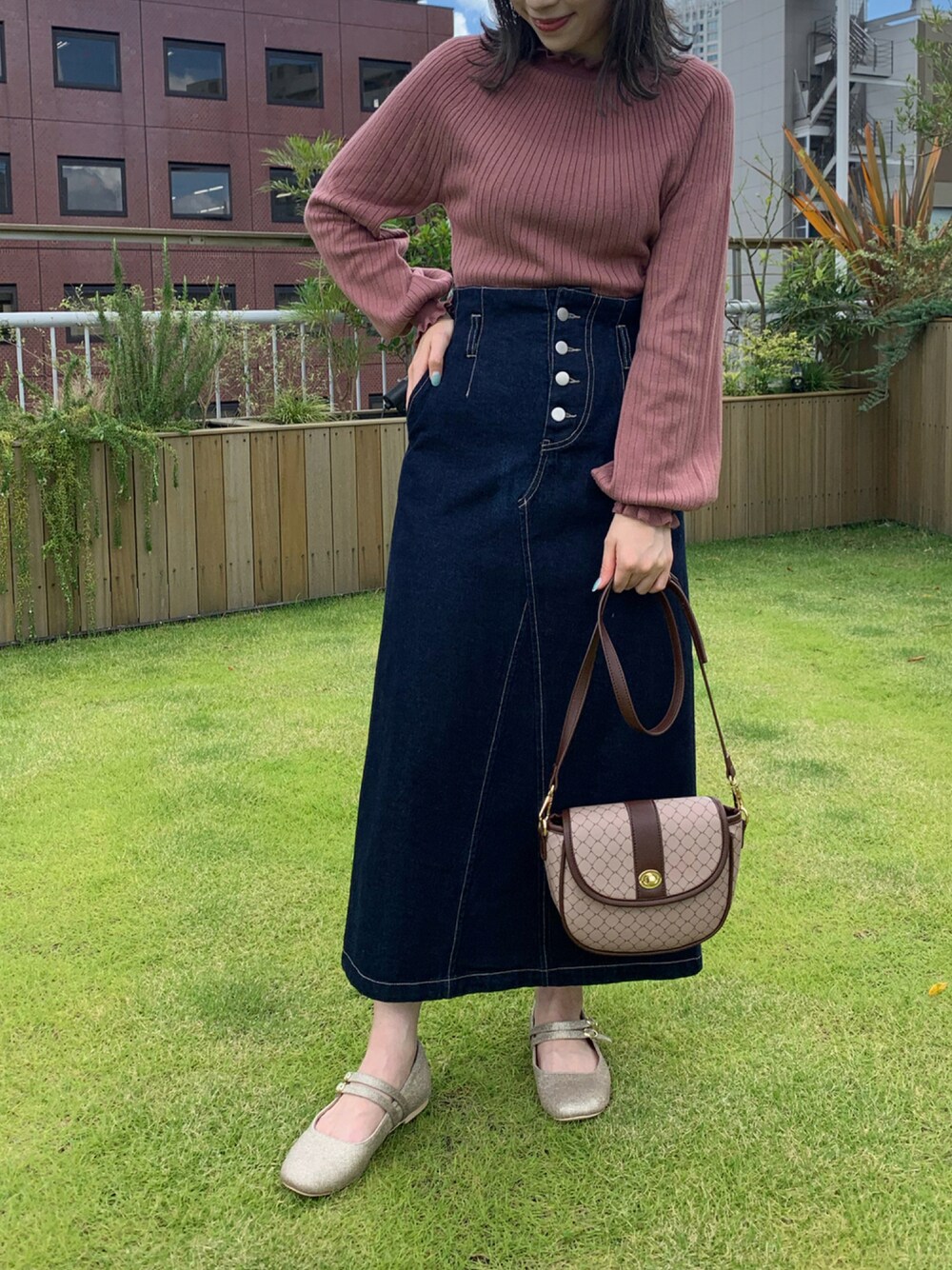 昨年も人気の求心ニット♡ 薄手で着やすいので、インコーデもしやすい◎ お袖のたぽっと感が可愛い~ スカートはシルエットが綺麗に見える◎ ハイウエストデザインなので脚長効果抜群です!