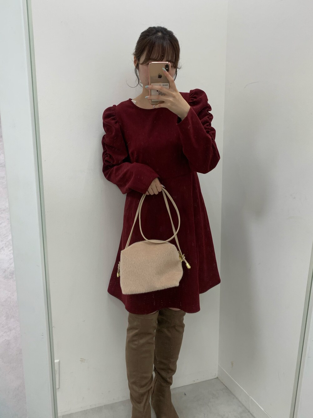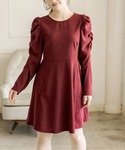 ボルドーカラーが目を引くワンピース♡ 肩のパワショルもポイントで おでかけにもぴったり◎