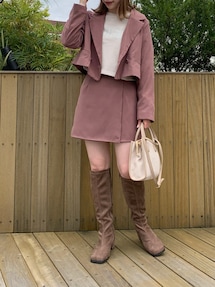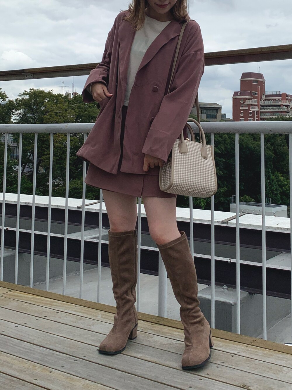 トレンドのセットアップコーデ♡ ミニスカートにロングブーツが 今年っぽい印象に♡