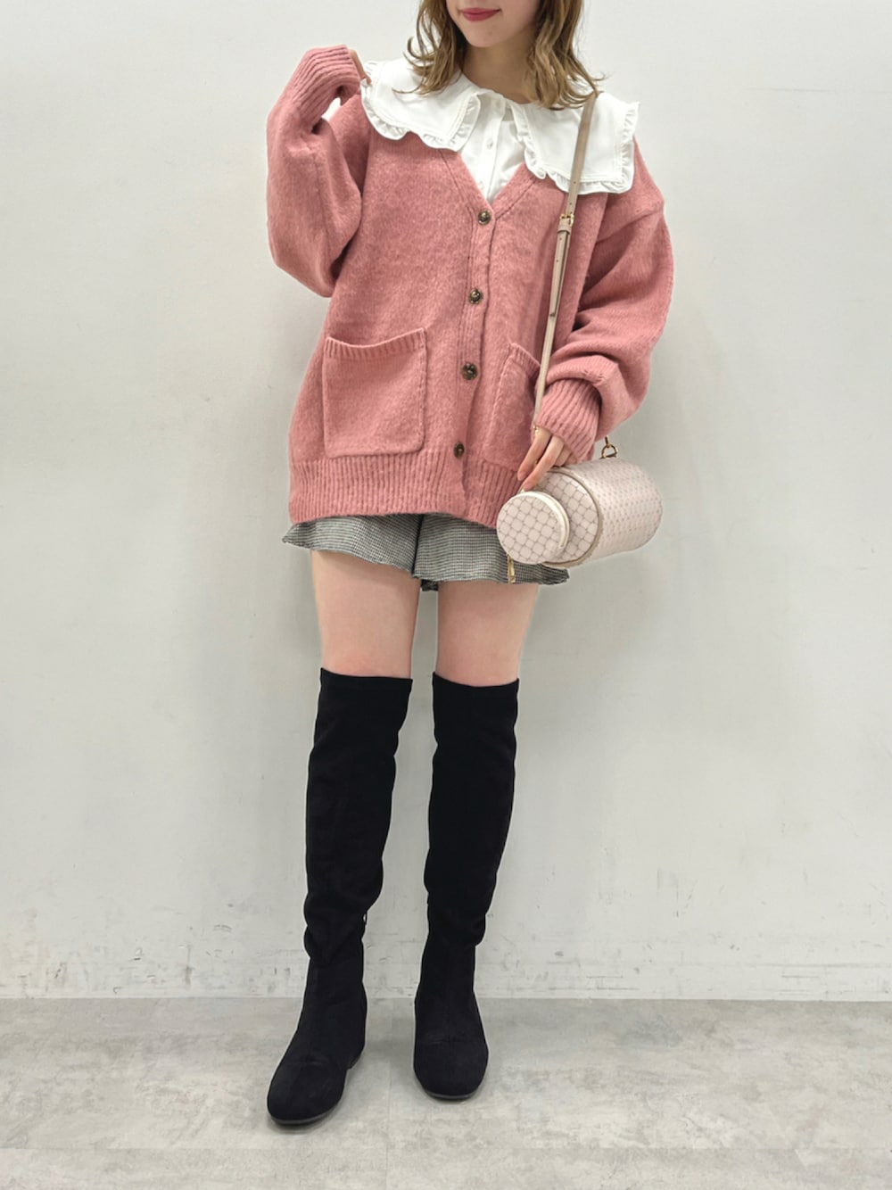 これからの時期にマストな モヘアカーディガンでレイヤードコーデ♡ 襟ブラウスとショーパンと合わせて ガーリーコーデで着てみました♡