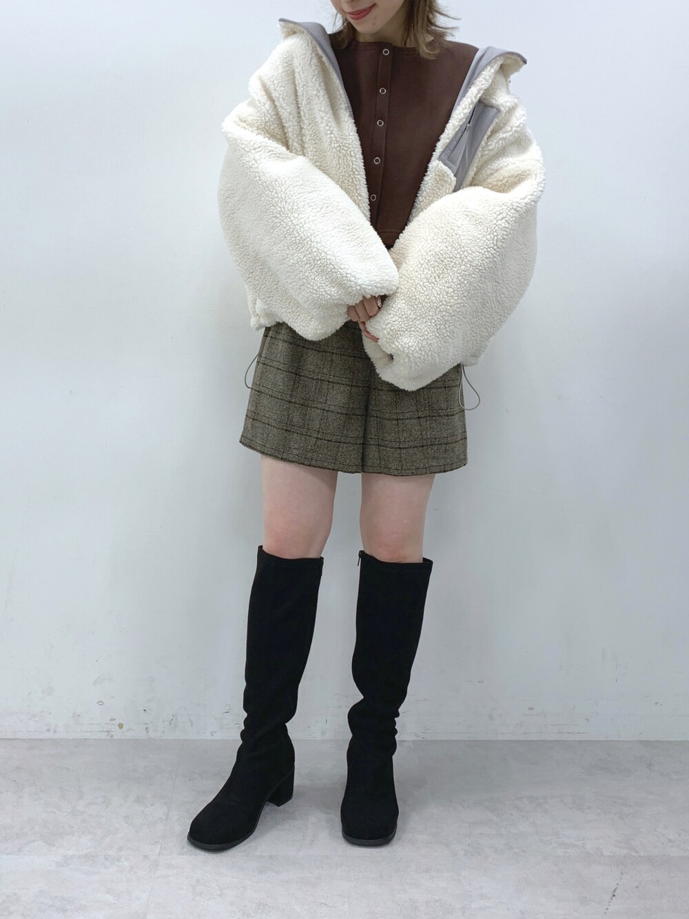 11/14 ZOZOTOWN¥1000オフクーポン👼🏻 ボアとナイロンのリバーシブルアウター♡ 今年はミニ丈×ロングブーツ合わせがおすすめ◎