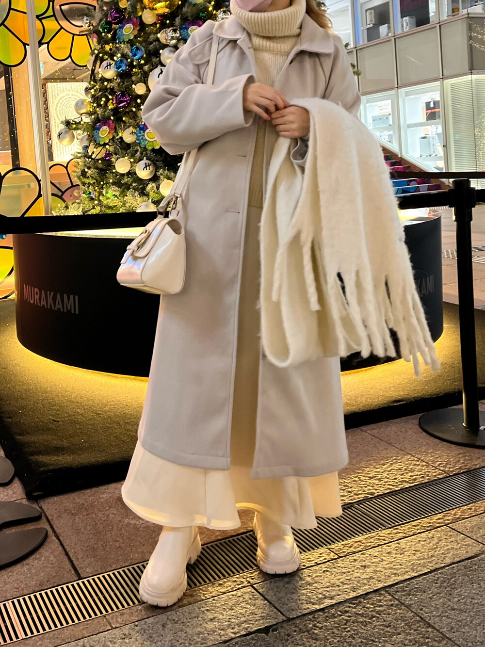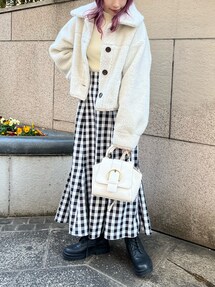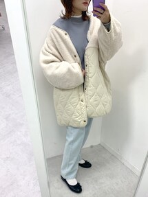 risa☻(OLIVE des OLIVE ラフォーレ原宿)のマフラー「【ZOZO限定カラー有】ブークレマフラー」を使ったコーディネート