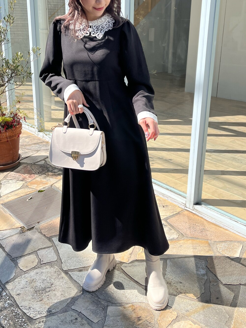 ワンピース→フリーサイズ シンプルなデザインでレース襟が映えるロングワンピース♡ WEB限定のアイテムになります◎