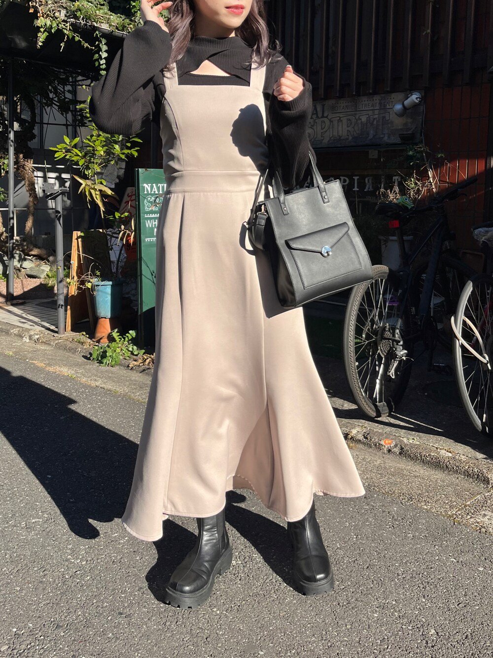 ジャンスカ→フリーサイズ バックリボンデザインのジャンスカ♡ 中のトップスで雰囲気を変えられるのが嬉しいポイント◎ マーメイドデザインでラインが綺麗に着られる◎ ワンピース→フリーサイズ バックリボンとウエストシャーリングが可愛いワンピース♡ シャーリングが入ってるのでウエストスッキリ見えが叶う◎