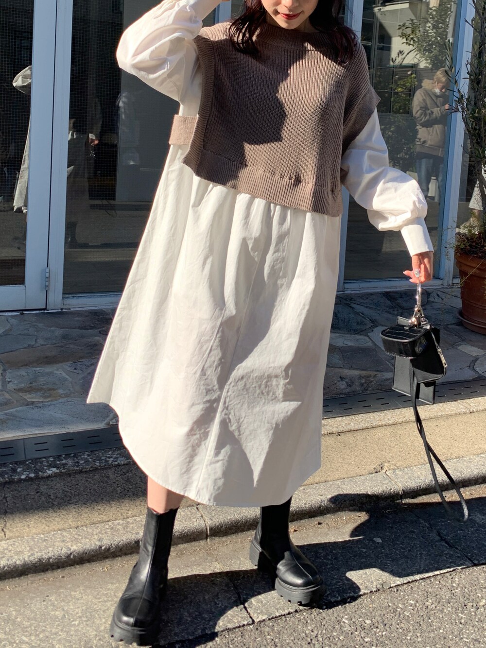 ニットベストのドッキングワンピース♡ 一枚でオシャレみえ◎ ゆったり楽に着れる◎