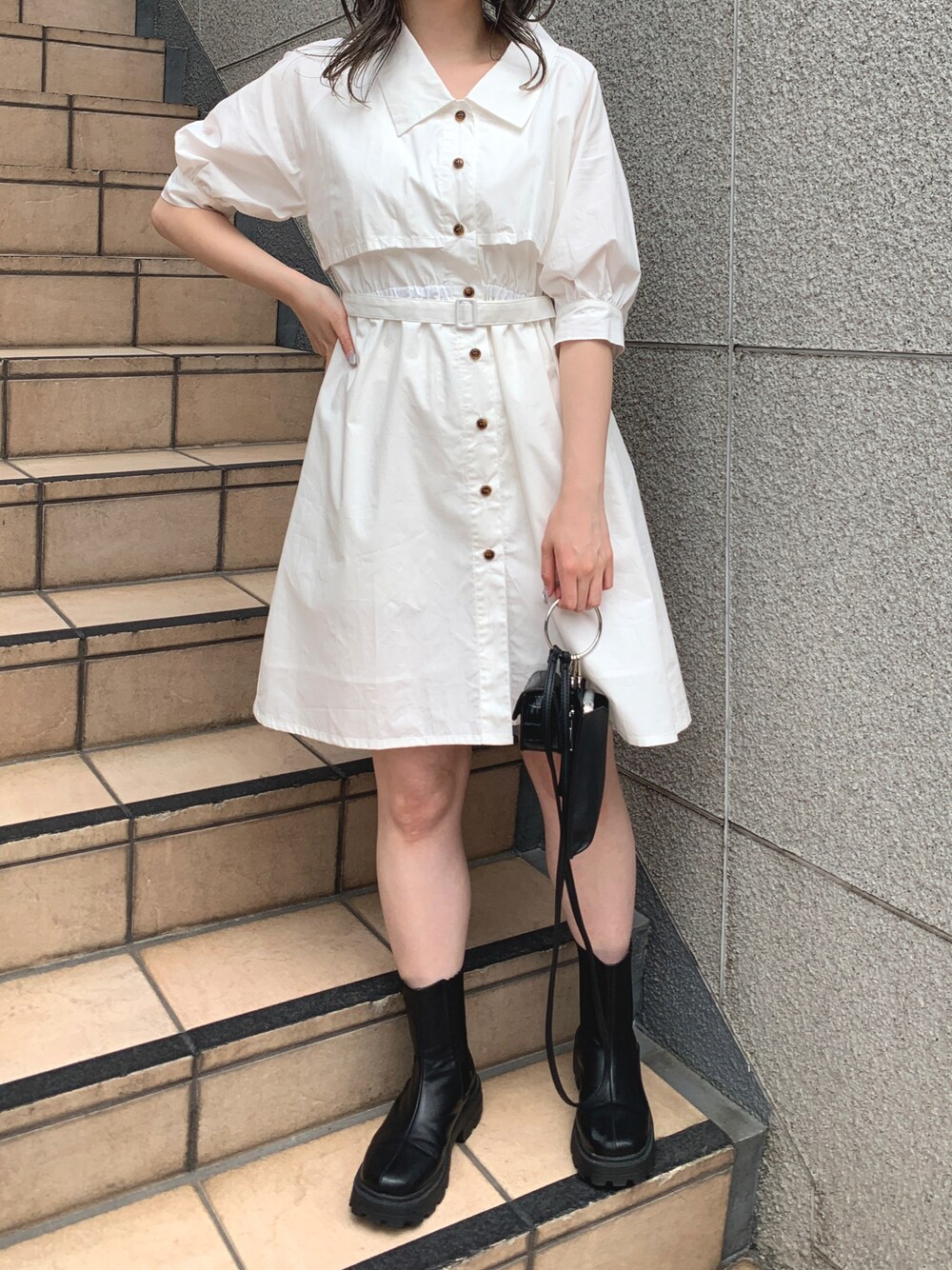 risa☻(OLIVE des OLIVE ラフォーレ原宿)のワンピース「【WEB限定カラー有】半袖トレンチミニワンピース」を使ったコーディネート