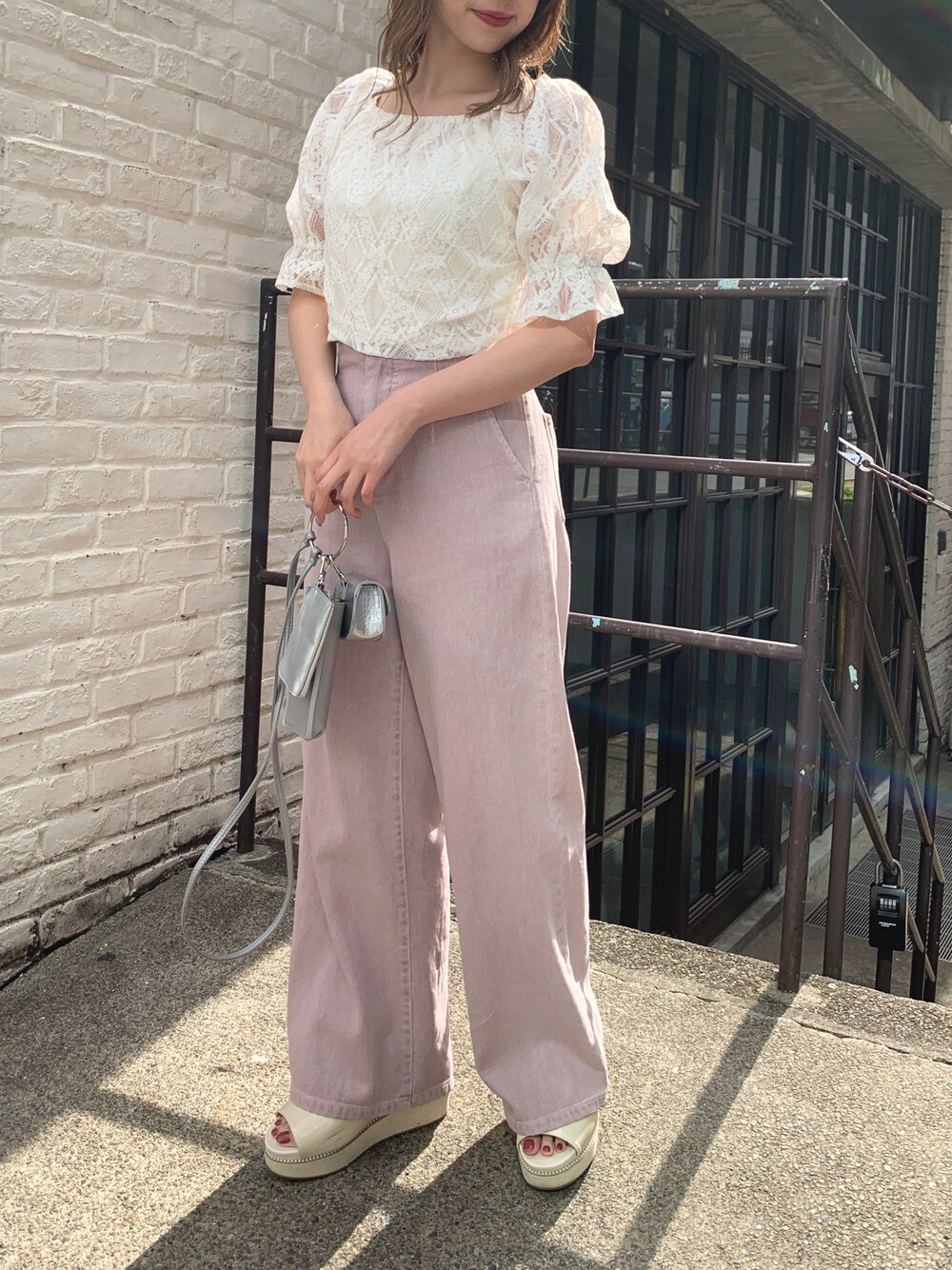 ブラウス→フリーサイズ バックリボンが大人かわいいブラウス♡ チラッと透けるお袖と背中の肌見せが今年っぽ◎ クロップド丈で短めなので、インせずにすっきり見え デニム→フリーサイズ 大好評のハイウエストデニム ウエストがスッキリ着れる◎ ピタッとし過ぎず足のラインが出ないので履きやすい
