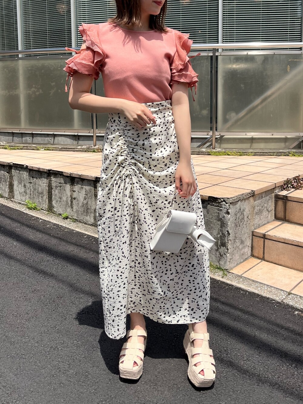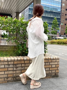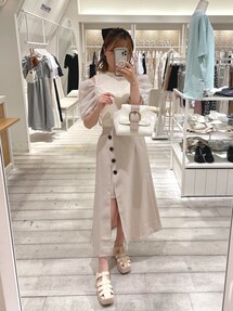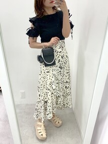 トップス→フリーサイズ お袖のフリルデザインが可愛いトップス♡ リボンで肌見せ具合を調節できるのが、嬉しいポイント◎ スカート→フリーサイズ 今季トレンドのスリットスカート 露出しすぎないさり気ないデザインで履きやすい◎ 柔らかい素材感でシワにもなりにくい