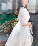 ワンピース→フリーサイズ 大人気の刺繍ワンピースが今年もついに♡ ウエストは太めの切り替えですっきり細見え◎ 後ろがゴムなのでキツくなく着やすいデザイン◎