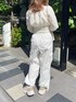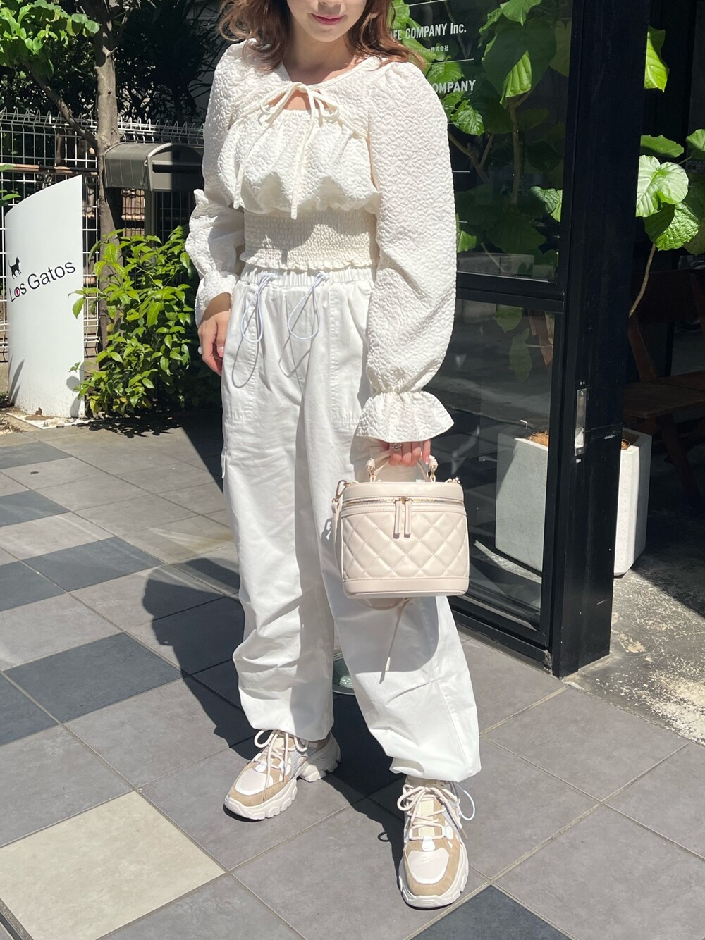 ブラウス→フリーサイズ ポコポコ素材が凹凸感があり可愛いブラウス♡ 胸開きデザインだけど、肌見せは少ないので露出も控えめで着やすい◎ ダブルフロントなのでスクエアネックで着ることもできる! ウエストはシャーリングですっきり細見え◎ パンツ→フリーサイズ 今年流行りのカーゴパンツ ゆるっと履けるので楽に着られる ウエストは総ゴムのデザイン