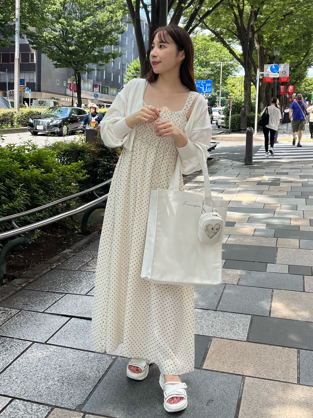 ・カーディガン→フリーサイズ ハートボタンが可愛い短丈のカーディガン お袖のパフッとしたボリューム感もポイント ・トートバッグ 大きめサイズのトートバッグ しっかりした素材なので自立してくれるのが嬉しい〇 中には収納に便利な内ポケット付き ・チビぬいケース 推しのぬいぐるみといつでも一緒にお出かけできるぬいケース ハートのくりぬきが可愛いデザイン