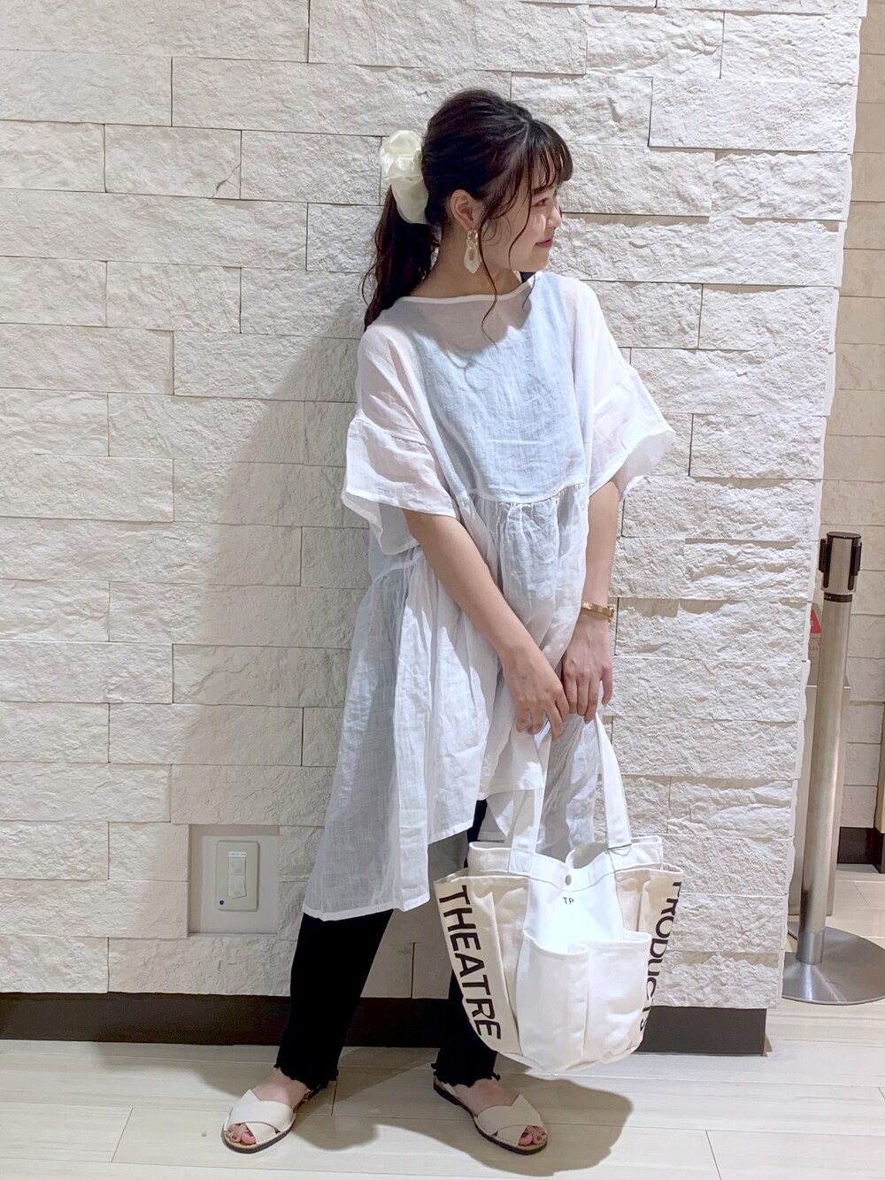 モノトーンコーデ𓂃 𓈒𓏸 後ろリボンのシアーブラウスで 清涼感のあるコーディネートに◎
