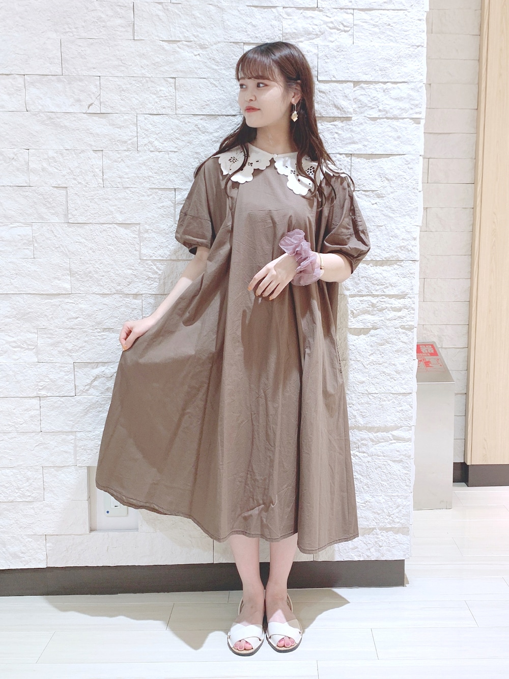 大人可愛いブラウンコーデ☁ お袖のボリューム感が可愛い シルエットが綺麗なワンピース୨୧ つけ襟をで可愛さをプラス♡