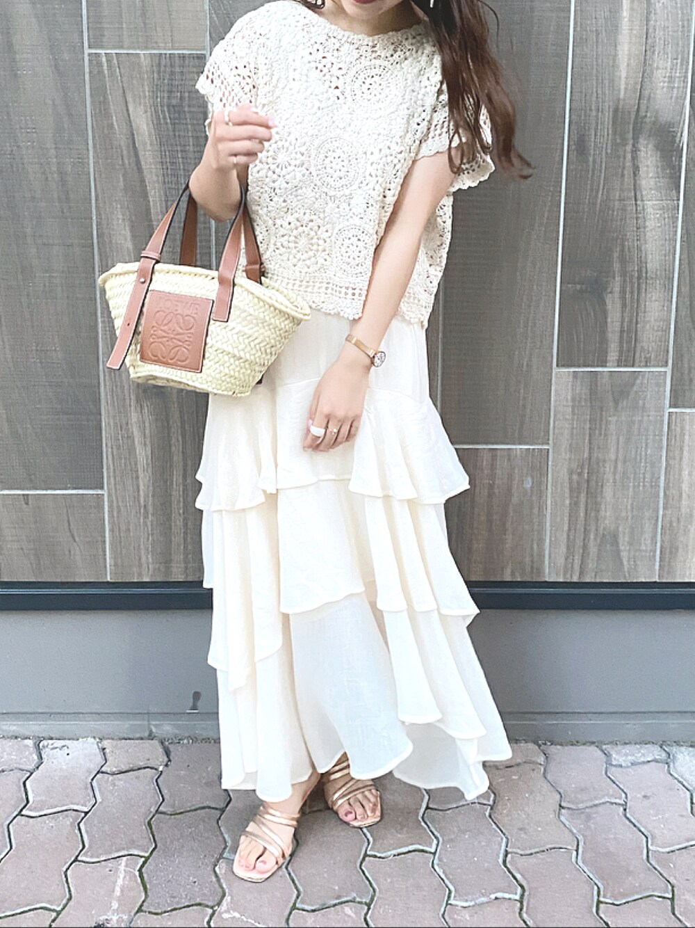 ワントーンコーデ☁ かごバッグがお気に入り♡